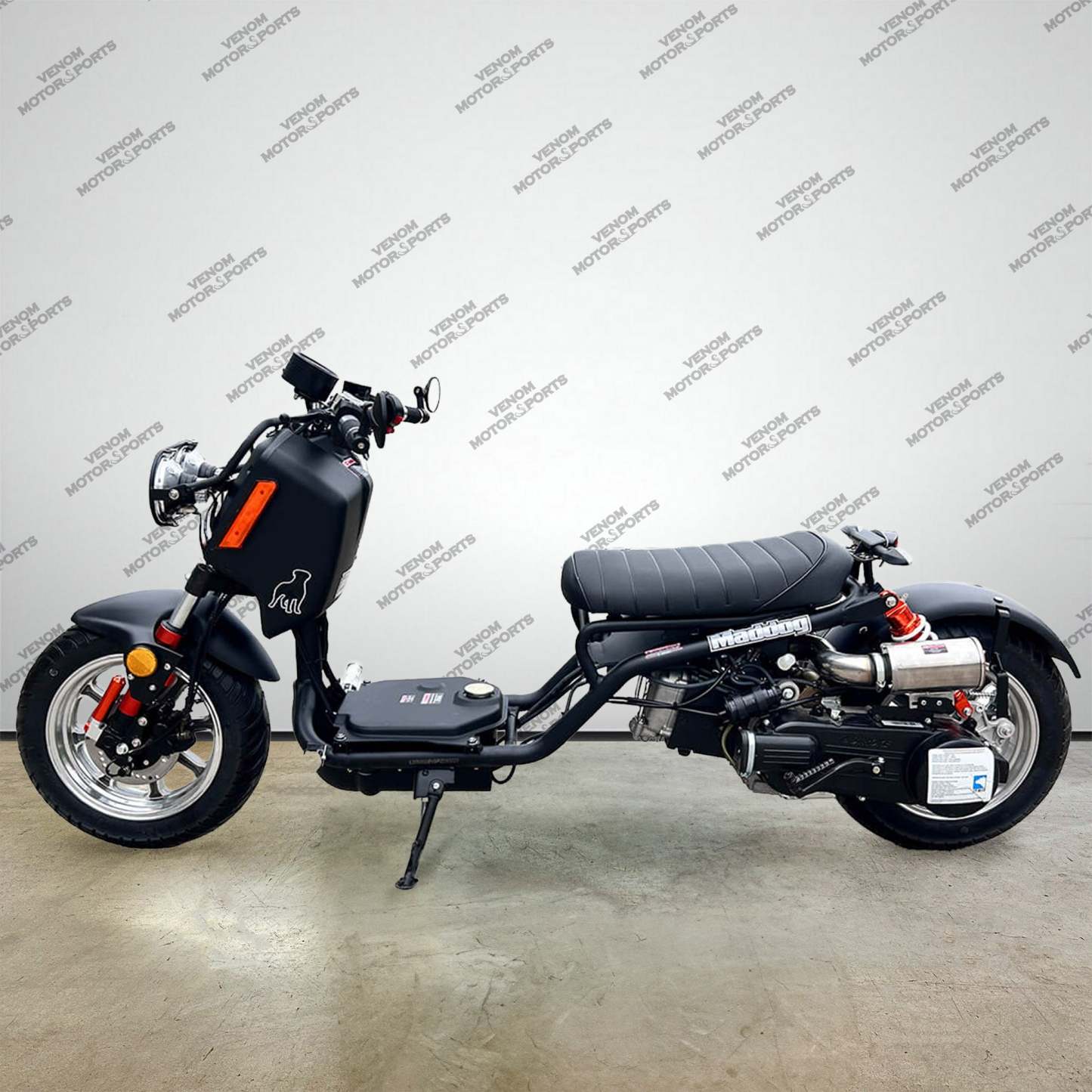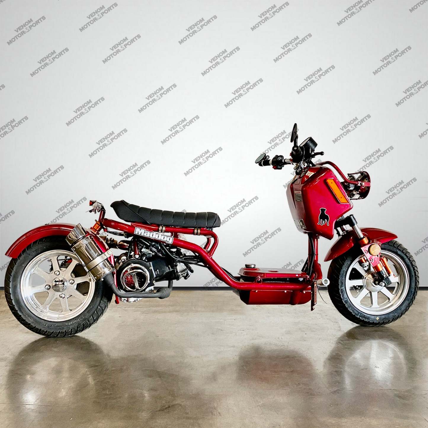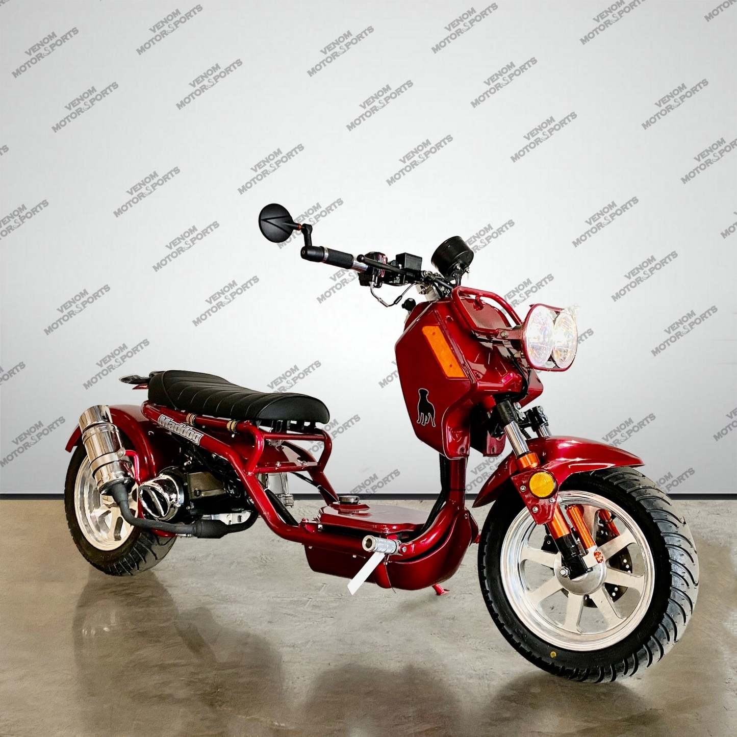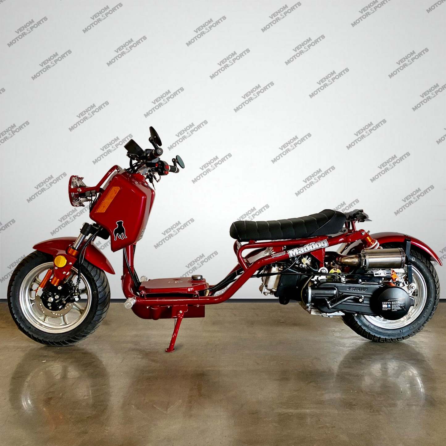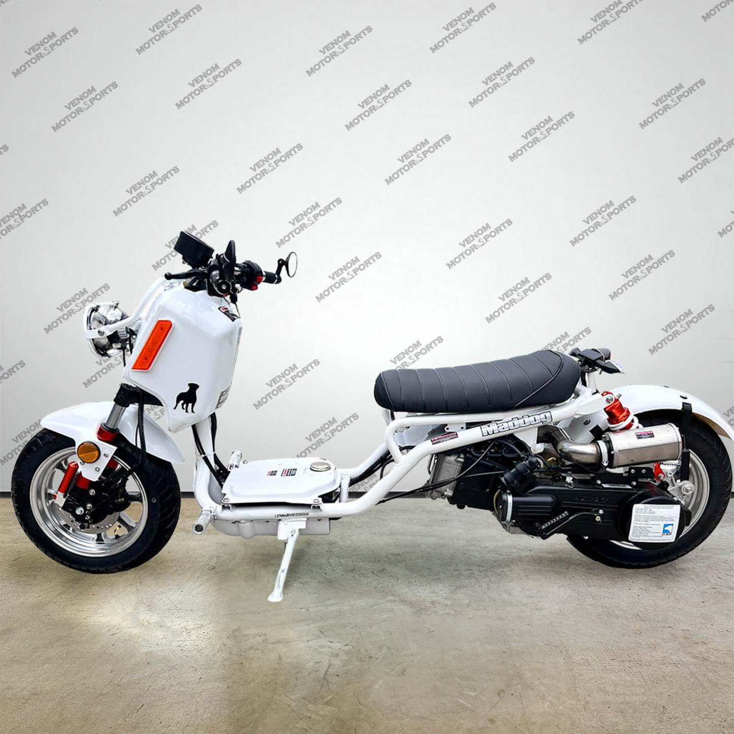Introducing the Generation 4 50cc Maddog Scooter, equipped with an automatic transmission and stretch out design inspired by the original Honda Ruckus. Order now to experience effortless riding with maximum comfort and style.