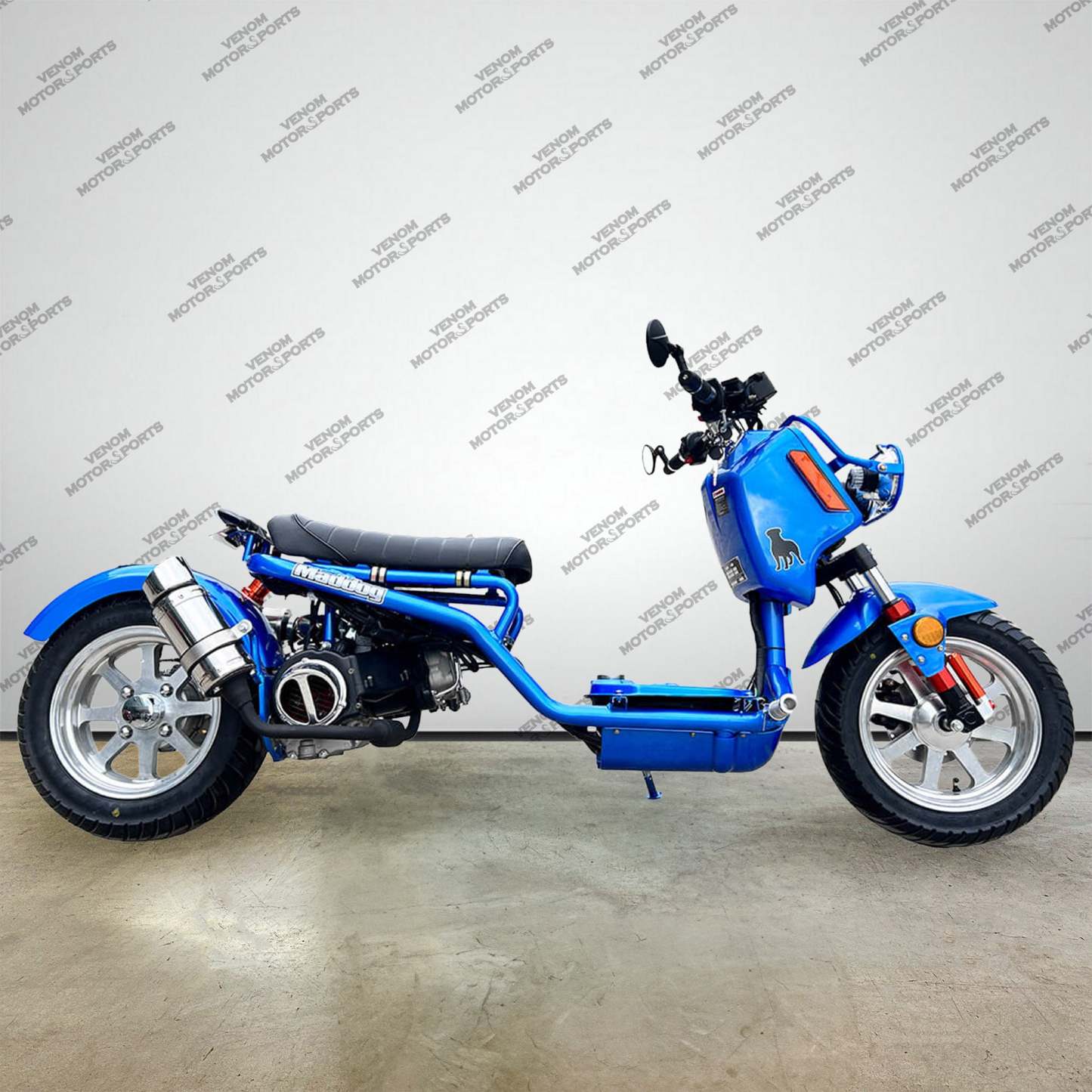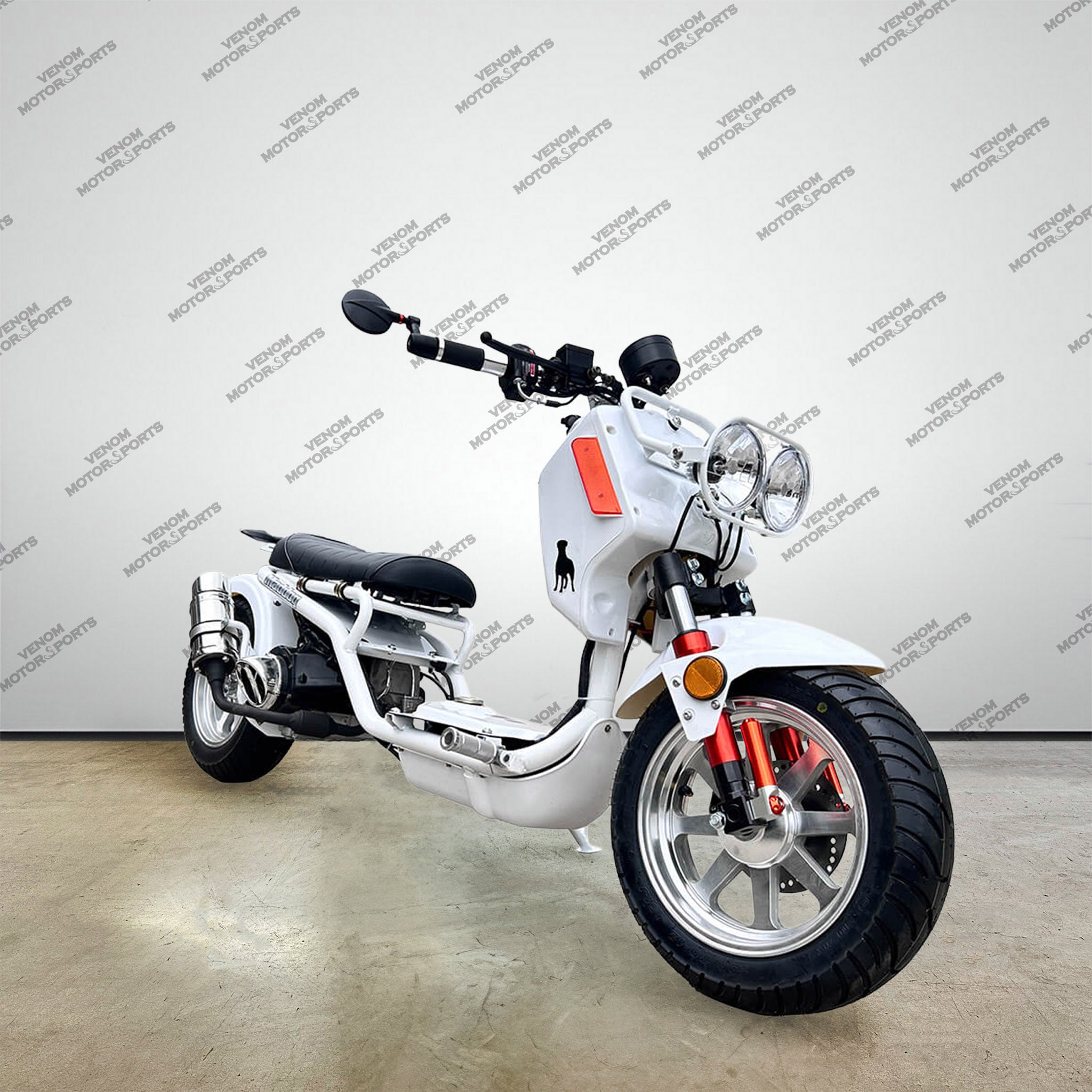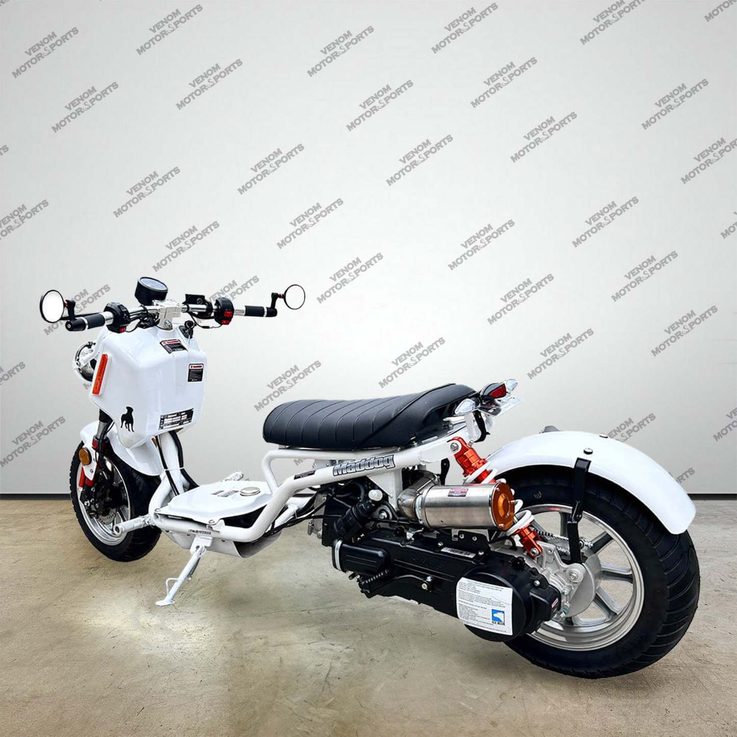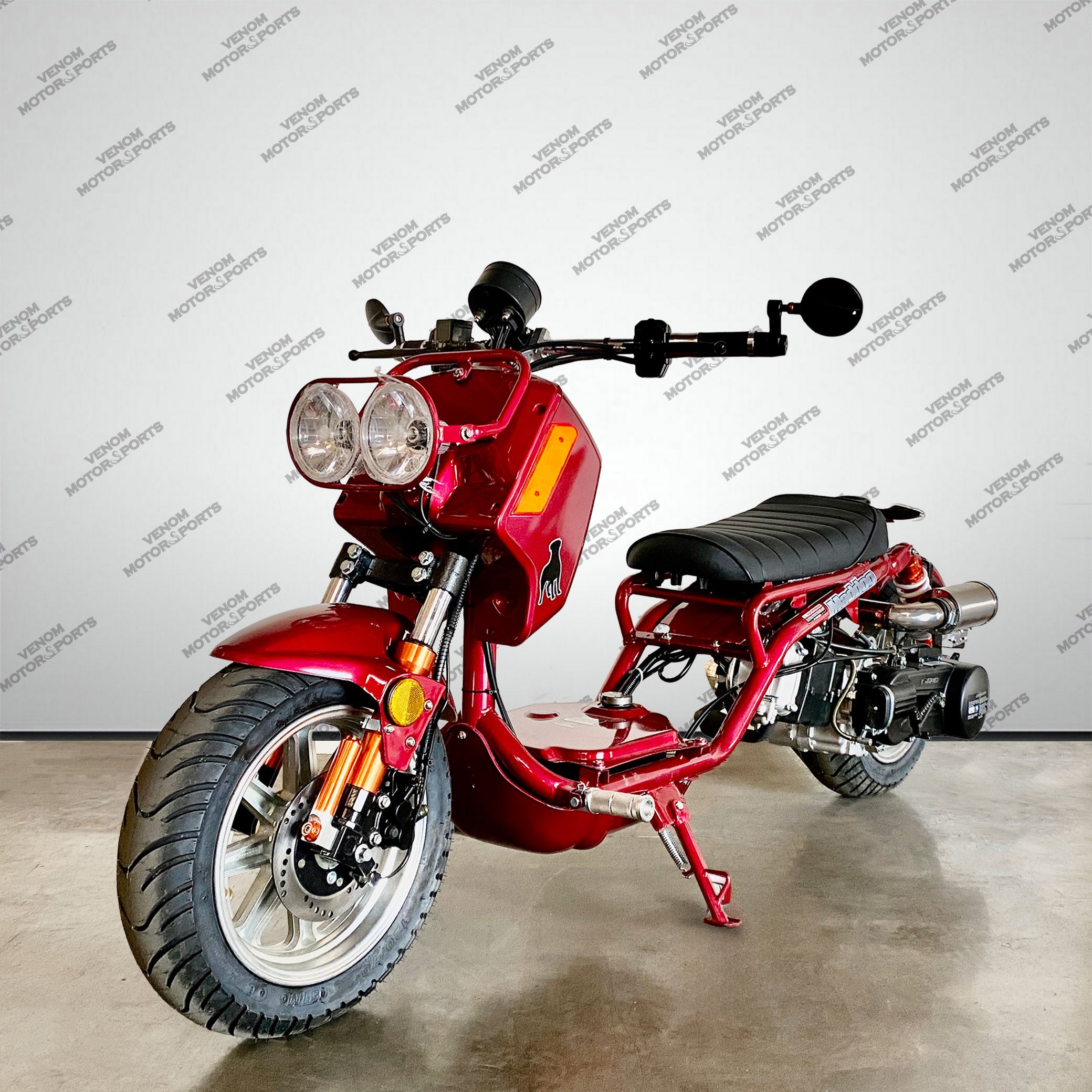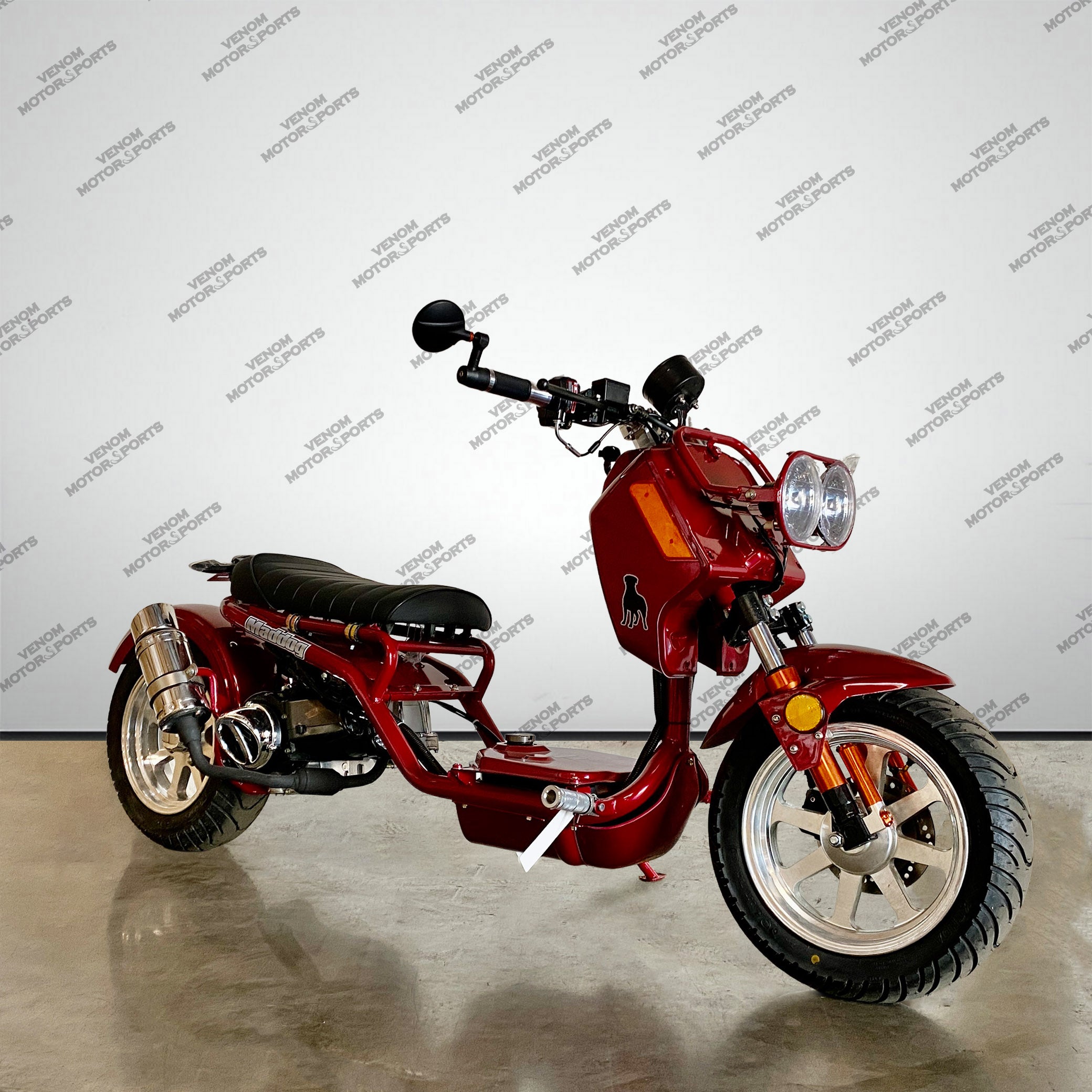 Introducing the Generation 4 50cc Maddog Scooter, equipped with an automatic transmission and stretch out design inspired by the original Honda Ruckus. Order now to experience effortless riding with maximum comfort and style.