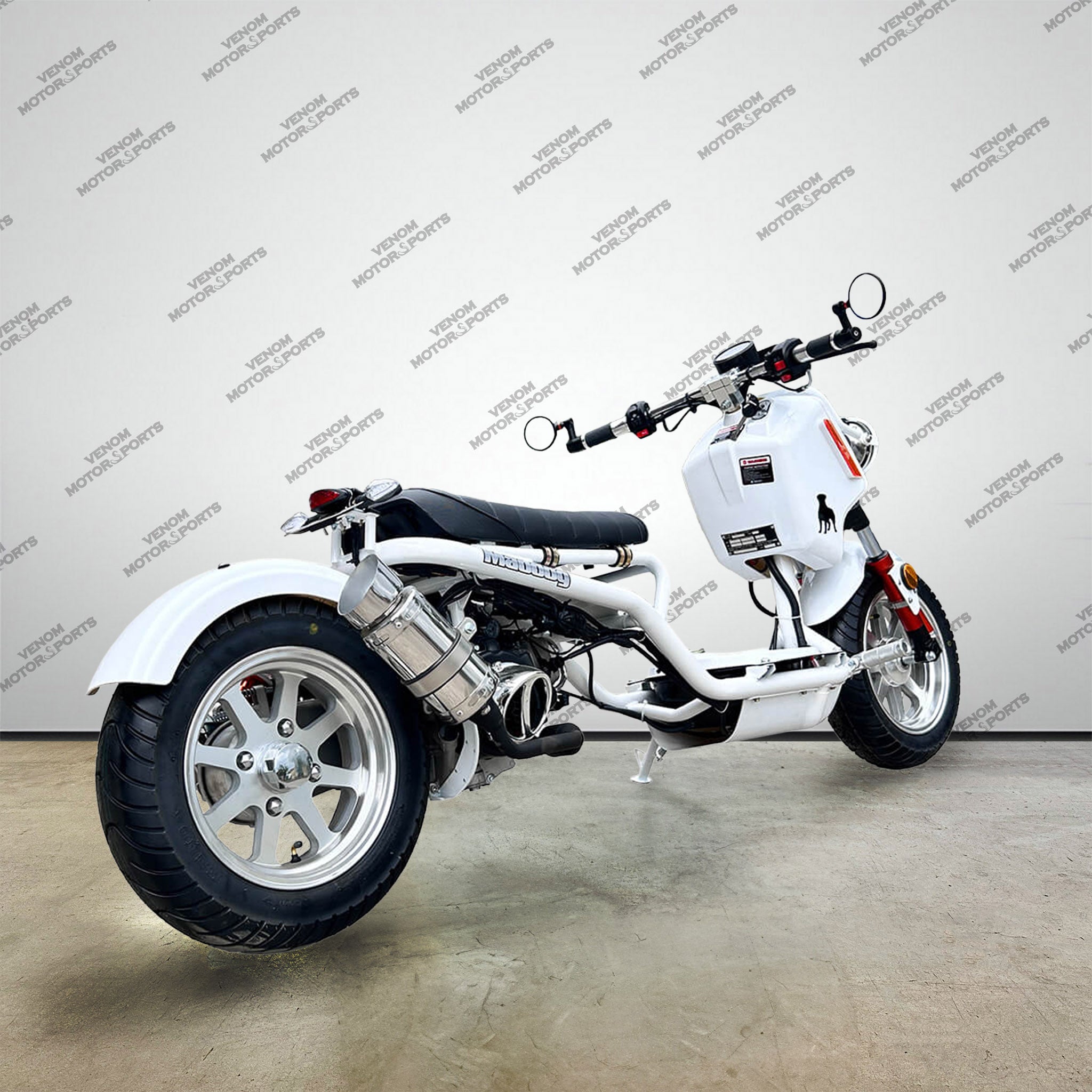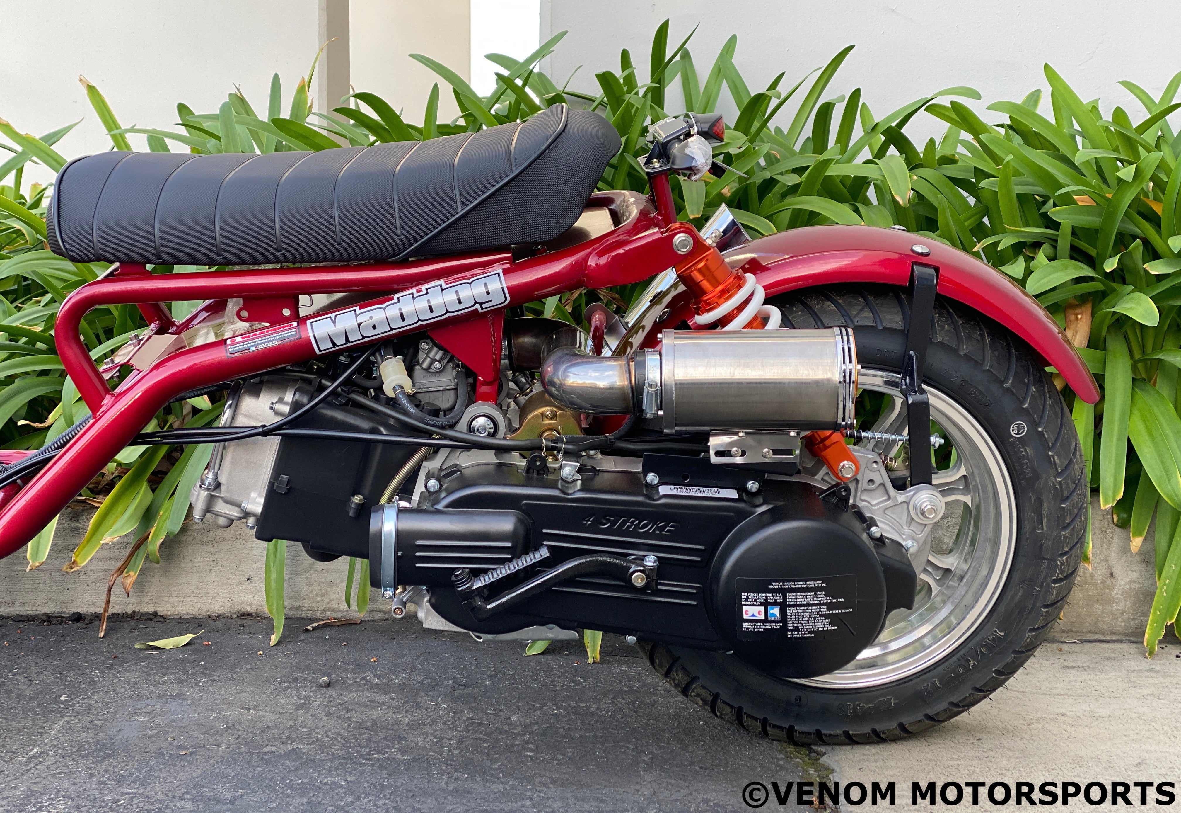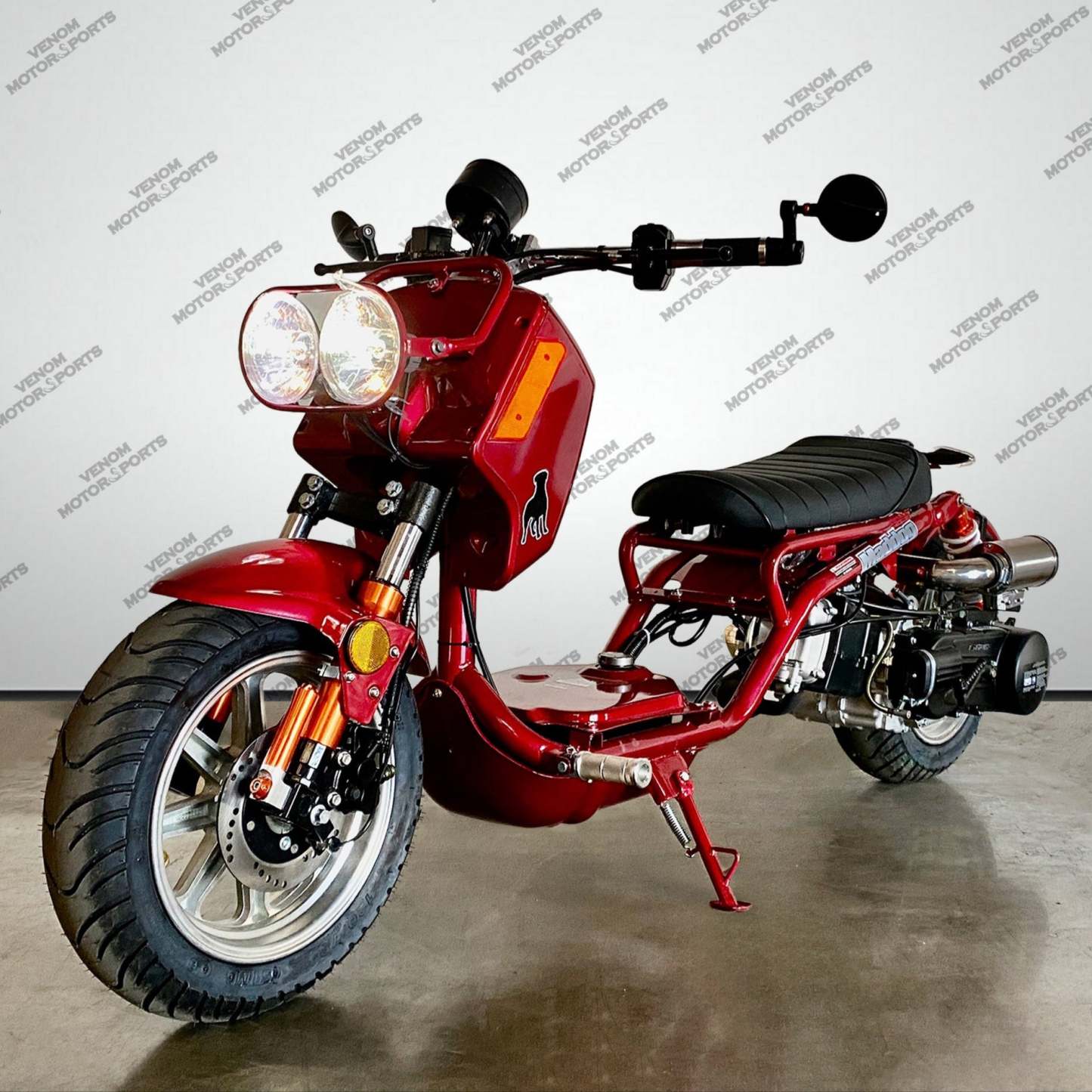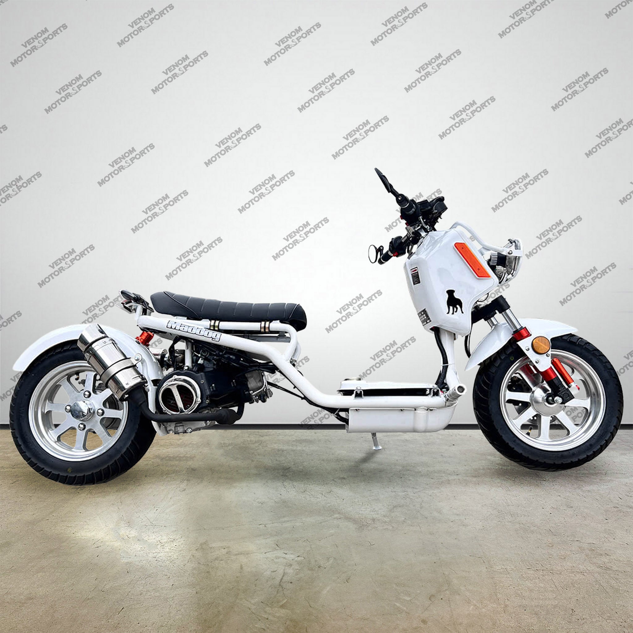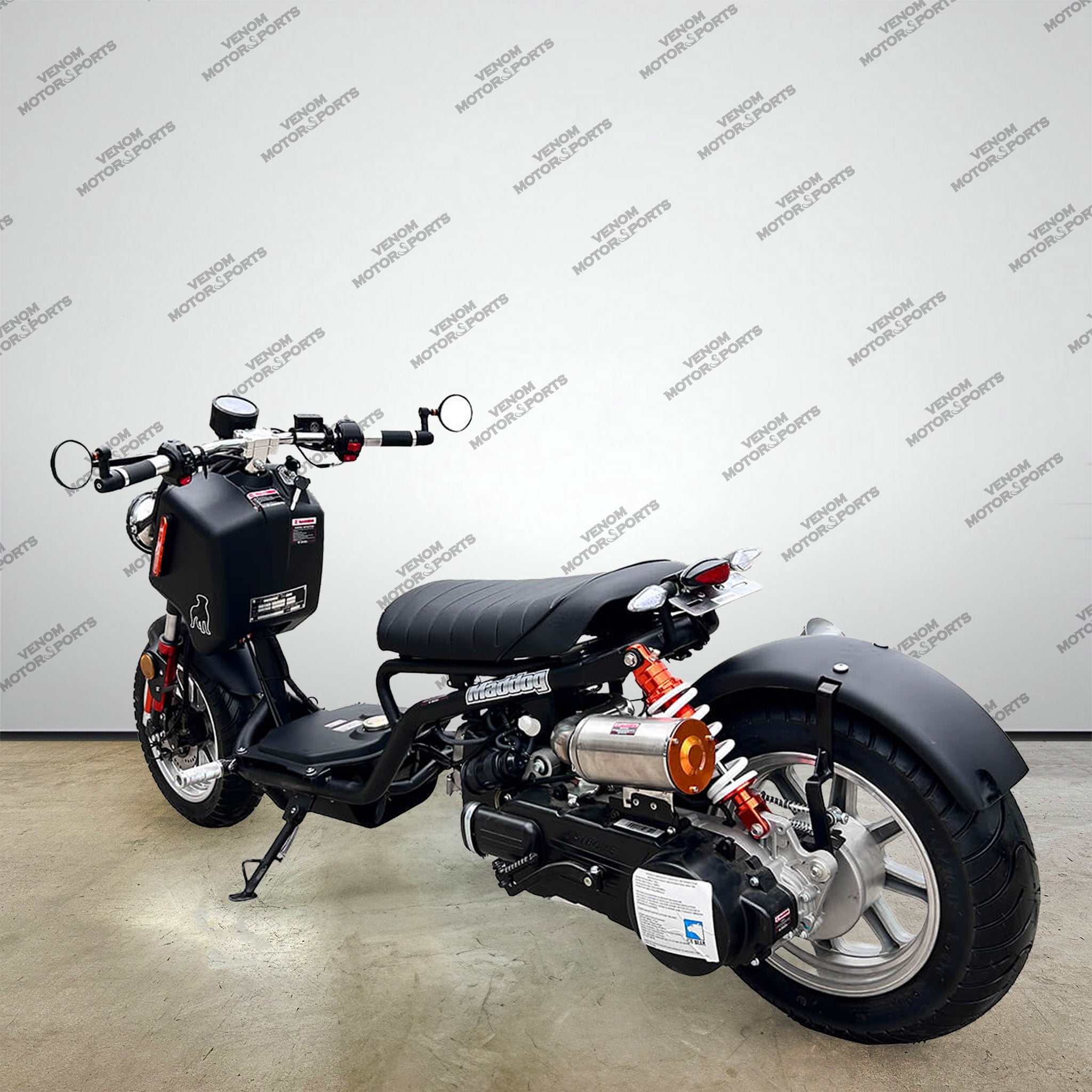 Introducing the Generation 4 50cc Maddog Scooter, equipped with an automatic transmission and stretch out design inspired by the original Honda Ruckus. Order now to experience effortless riding with maximum comfort and style.