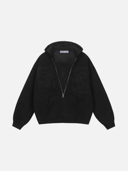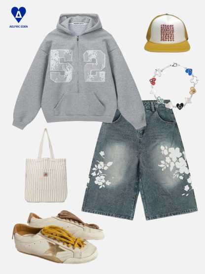 Lace Number Half Zip Up Hoodie