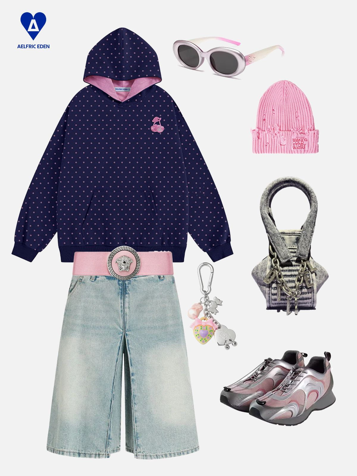 Make a bold statement with the Aelfric Eden Polka Dot Cherry Pullover Hoodie. Featuring a playful polka dot pattern and vibrant cherry graphics, this hoodie combines streetwear edge with a touch of whimsy.