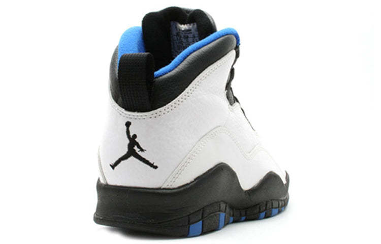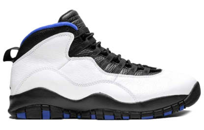 The Air Jordan 10 Retro in the 'Orlando' colorway is a classic sneaker that was originally released in 1995. This sneaker is part of the City Pack and pays homage to the Orlando Magic team colors. The build of this sneaker is true to the OG, with a white tumbled leather upper and black accents on the tongue, throat, laces and midsole. Pops of royal blue on the collar lining and rubber outsole complete the look of this classic sneaker.
